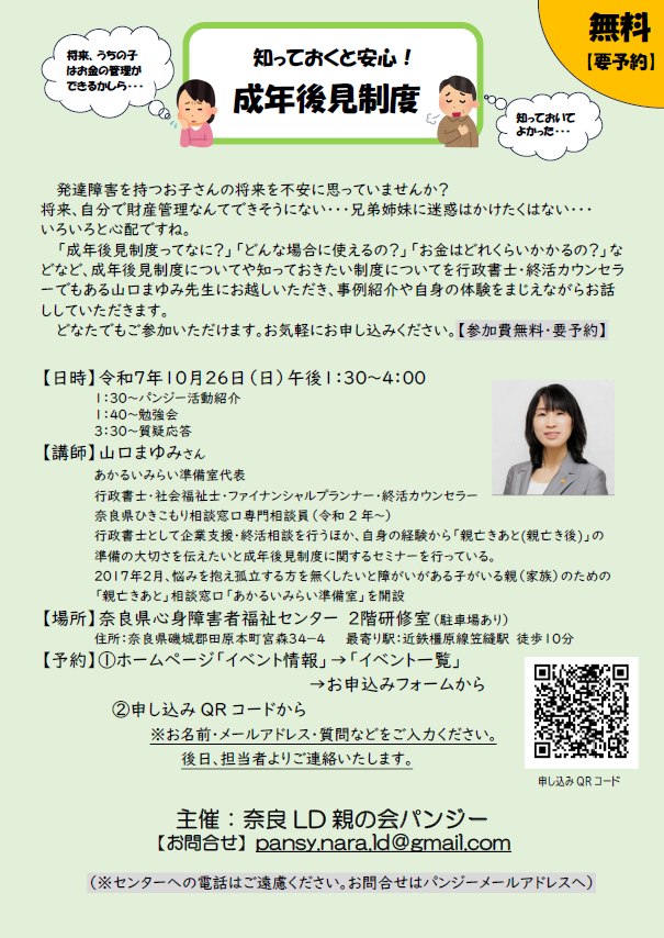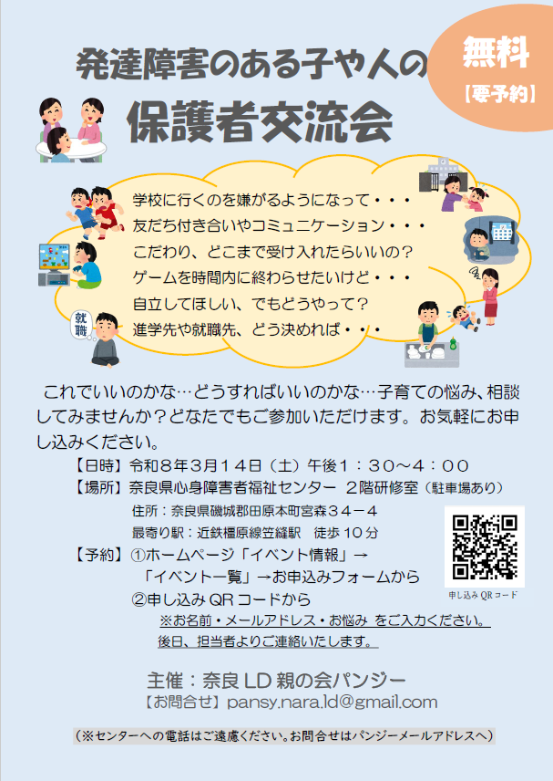 【場所】奈良県心身障害者福祉センター(駐車場あり)2階研修室