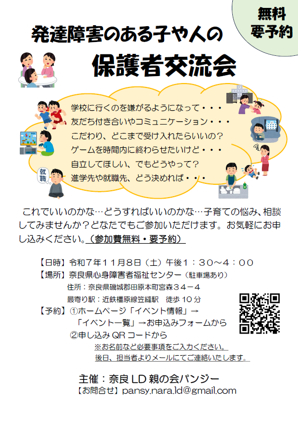 【場所】奈良県心身障害者福祉センター(駐車場あり)2階研修室